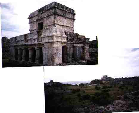 All right, now this is more like it. Here we are in Tulum. This is one of hundreds (if not thousands) of sites all over Southern Mexico where you can see how they really used to live. Is this Aztec? Olmec? Toltec? Mayan? Well, I could spend a lot of time providing you with a pretty bad education about what I know, but you're probably better off finding a well-researched book. Here's what we know: These ruins (and the rest that you'll see) served various governmental, religious and astrological uses. They were the center of much larger cities, where the general population lived in small thatched huts, and the heavies hung out in their rock capitals. Everybody came here to shop at the mall, eat at restaurants - you know, just like it is today. Although there are obvious facets of these structures and cities that served defensive purposes, that is not primarily why the Indians built these cities. Why did they build them? Well if the Spanish had bothered to stop and ask them before they plundered the entire civilization, we might know today. But alas, all we have are a lot of cryptic hieroglyphic and some guess work. Nice places though, huh? |